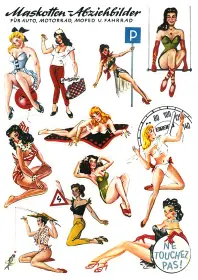 Pin-Up Aufkleber - 11 Maskottchen-Abziehbilder, 50er 60er Jahre Girls