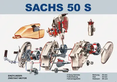 Sachs 50 S Motor Poster Explosionszeichnung Tafel