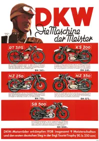 DKW Motorrad Modelle 1938/1939 Vorkrieg RT 3 PS KS 200 NZ 250 350 SB 500 Poster