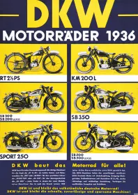 DKW "Motorräder 1936" RT 2,5 PS SB 200 350 500 Luxus 250 Sport KM 200 L Poster