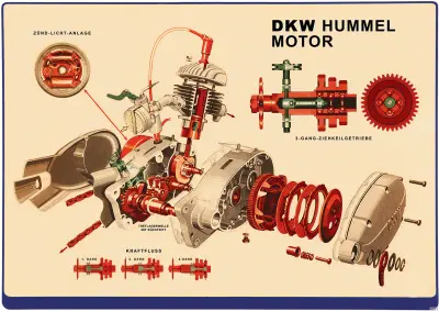 DKW Hummel Motor Schnittzeichnung Explosionszeichnung Moped Poster