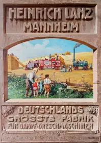 Heinrich Lanz Mannheim Dampf-Dreschmaschinen Traktor Werbung Reklame Schild Poster