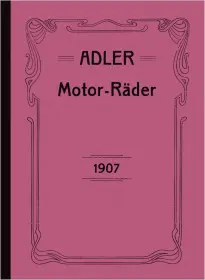 Broschüre der Adler Motorräder inklusive Seitenwagen und Vorsteckwagen mit Anhang für PKW und Fahrräder. Ausgabe 1907.
