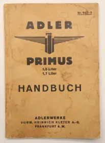 Adler Primus 1,5 und 1,7 Liter PKW Original Handbuch Bedienungsanleitung NR. 640/3 von 4/1935
